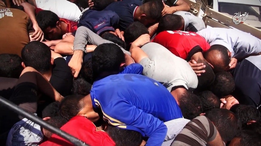 ويظهر الشريط الذي تقارب مدته 23 دقيقة، ونشر عبر منتديات الكترونية مقربة من جماعة "داعش" الارهابية، اعدام مئات المجندين المكدسين جنبا الى جنب مقيدي الايدي، عبر اطلاق النار عليهم من مسدسات ورشاشات.